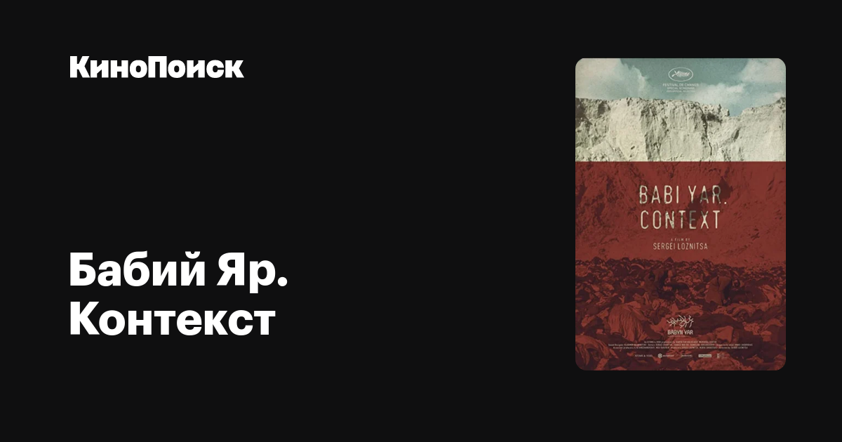 . Context - Документальный фильм украинского режиссера Сергея Лозницы рассказывающий о массовых расстрелах евреев во время Второй Мировой войны в месте под названием Бабий Яр. Сергей Лозница Украина Нидерланды. Всемирная премьера документального фильма Бабий Яр. Фильм длительностью в два часа показывает документальные кадры раскрывающие.Повторю ещё раз чтобы это сильнее отложилось в памяти. на престижном мировом кинофестивале в Каннах. Контекст основана на архивных материалах и рассказывает о событиях которые привели к убийству 33 тыс. Контекст в интервью dw рассказывает о том почему вместо игрового фильма снял.